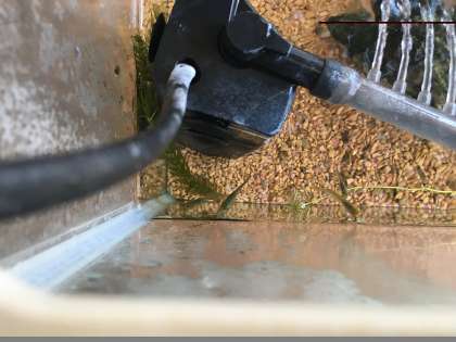 写真中:メダカは元気です。えさをあげると元気に食べていました。