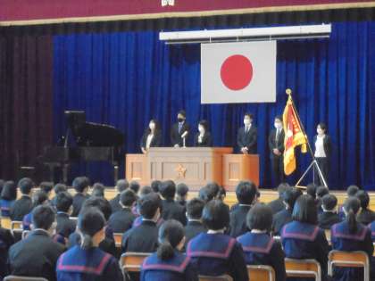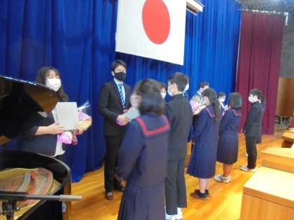 4月6日(火) 新2、3年生とともに、離任式をおこないました。