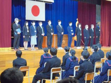 校長が「伝統ある大沢野中学校で、勤務できることをうれしく思います。
