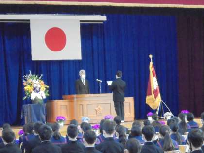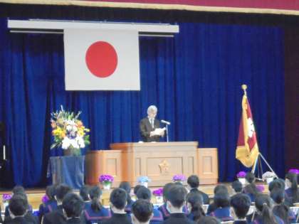 校長や祝辞をいただいたPTA会長さん、歓迎の言葉を述べた生徒会長の