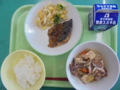 ごはん、牛乳、さばの塩焼き、