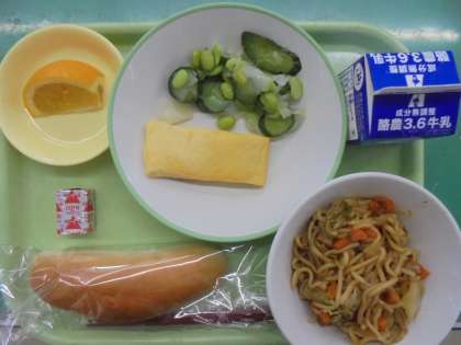 減量コッペパン、牛乳、焼きそば、卵ロール