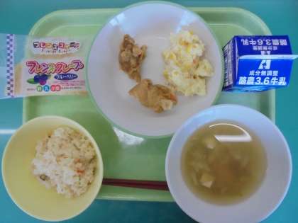ちらし寿司、牛乳、鶏肉の米粉揚げ、