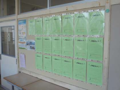 各学級前には、生徒の作文(「○学年になって」)が掲示されています。