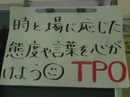 写真下:担任からのメッセージ。TPOはそれぞれ、何を表しているのでしょうか。
