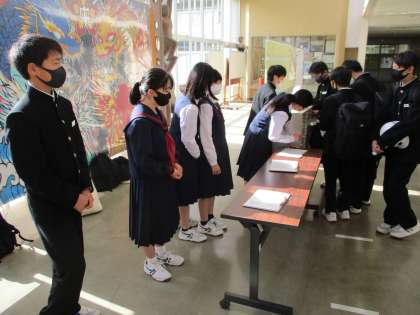 ボランティア実践部がベルマークの回収を呼びかけています。