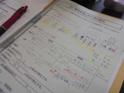 23Hの理科の授業では「水に電流を流したときの変化」について理科室で学習しています。