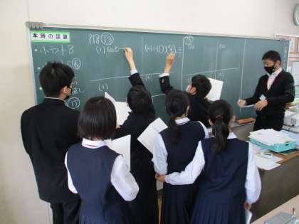 21H数学の授業の様子です。黒板に答えを書いていました。ノートも見やすいようにまとめてありますね。