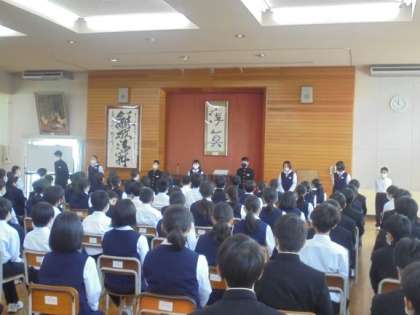 学年のリーダー(学年企画)の自己紹介や学年目標の発表をしました。