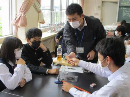 ゴーグルを着用し、安全に気をつけながら、楽しく実験を行っています!