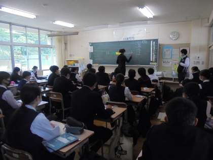 32H…英語 ALTの先生の授業を真剣に受けています。