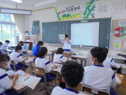 自分のオススメな物や場所について発表をしています。それぞれ自分の興味があることについてオススメポイントや理由も説明し、上手に発表していました!聞いている人もメモをとりながら真剣に聞き、発表後は温かい拍手をしていました。