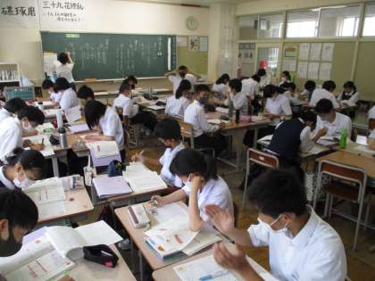国語の授業では、文章の中から助動詞や副助詞を探していました。