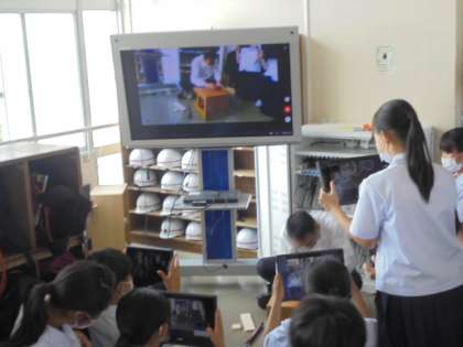 14Hの授業では、木材を加工する技術を学ぶために、生徒と教員の加工動作を比較して、のこぎりの使い方を追究しました。加工動作の録画、分析、意見の集約に生徒用の学習端末が活用されています。