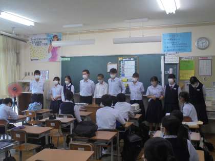 33H(上) 合唱コンクールのリーダーが意気込みを発表しています。