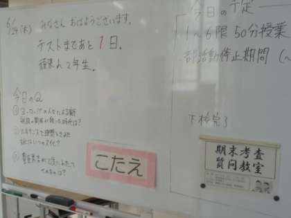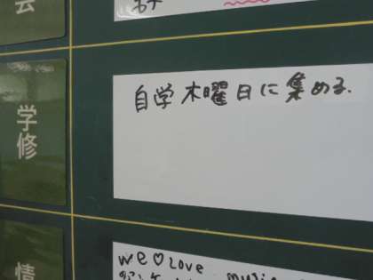 写真中 2年生のホワイトボードにメッセージが書かれています。