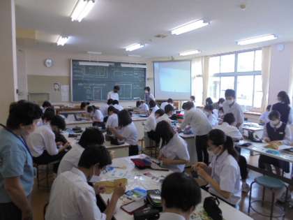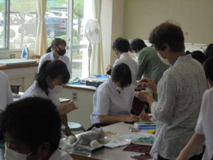 22Hの家庭科の授業では裁縫を行っています。今日は地域支援者の方が来校され裁縫の支援をしていただきました。ご協力ありがとうございました。