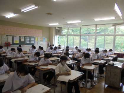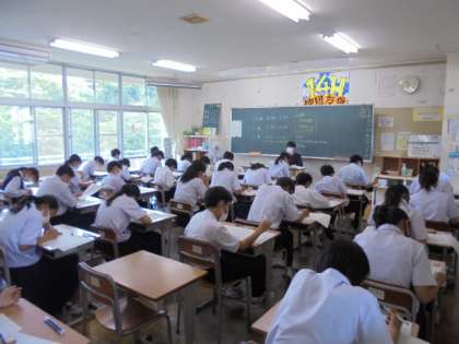1年生にとって、初めての定期考査1日目が終了しました。事前に学んだ『テストの受験の仕方』を意識して、最後まで集中して取り組むことができていました。