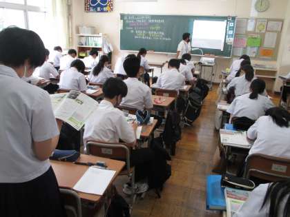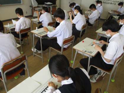 合唱コンクールで歌う曲の楽譜を糊付けしています。