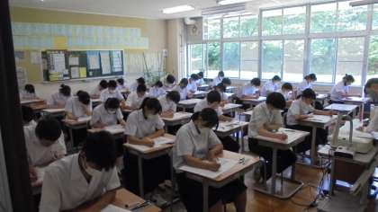 7月7日(水)3学年 公開日 2021/07/07 更新日 2021/07/07 3年生の活動から 第1回確認テストに取り組んでいます。進路選択に向けて大切なテストです。ベストを尽くして頑張っています。
