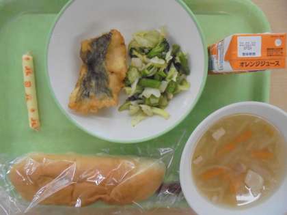 棒チーズ、ポテトスープ、アスパラサラダ、