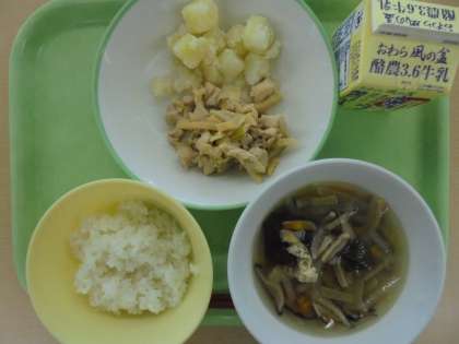ごはん、牛乳、あっさりチキン、