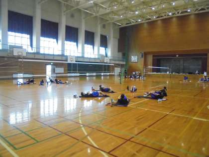バレー部は体力トレーニングを行っていました。
