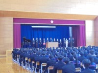給食の時間に放送で着任式を行いました。