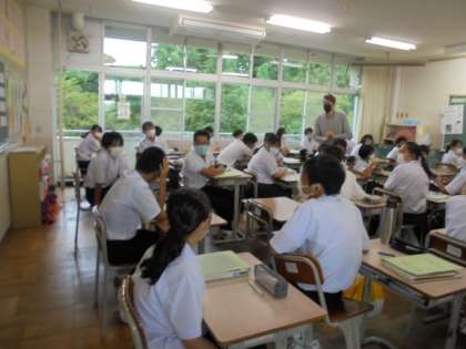 生徒は、緊張しながらも、英語で答えたり質問したりすることができました。