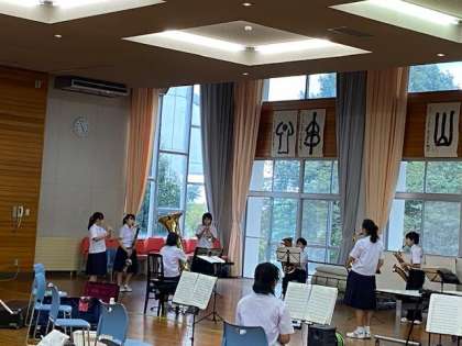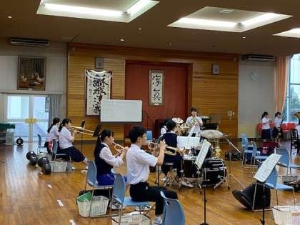 吹奏楽部では、コロナ感染予防の対策を行いながら、日々練習を重ねています。