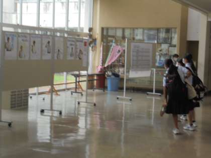 写真下 生徒会選挙のポスターが掲示してあります。