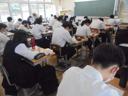 31H(理科)…小テストをそれぞれが一生懸命解いています。