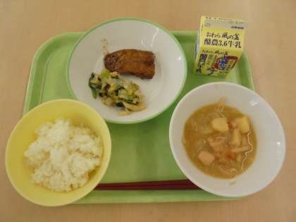 ごはん、牛乳、南蛮煮、さばのみりん焼き、おひたしです。