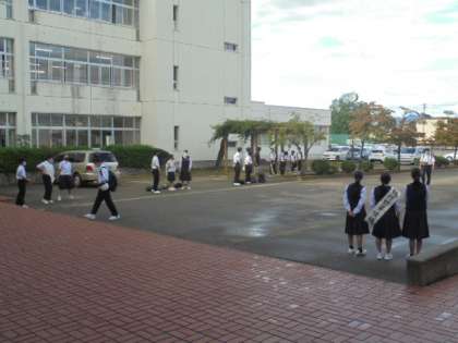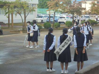 写真中・下 生徒会選挙にむけた立候補者の活動の様子