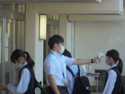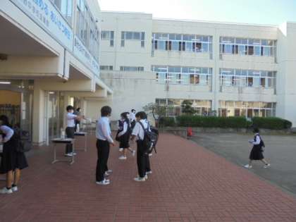 写真中 生徒会執行部があいさつ駅伝に参加してくれました。