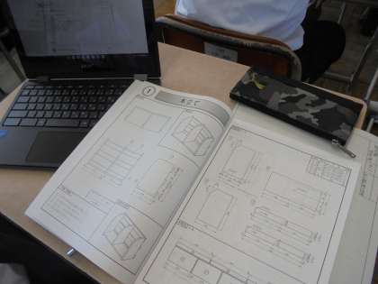 クロムブックで過去の作品の写真や、図面を見ながら自分が製作する作品を決めました。