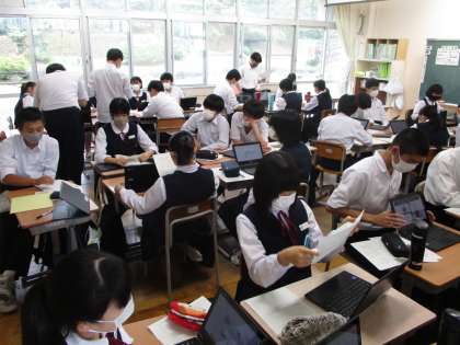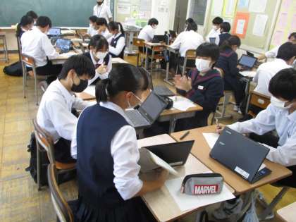 3学年では各クラスで「平和学習」の発表会を行いました。