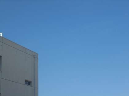 写真中 8時5分頃の空の様子。澄みきった青空です。