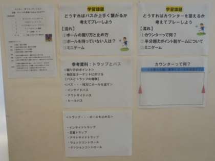 写真下 保健体育の学習(サッカー)について、掲示してあります。