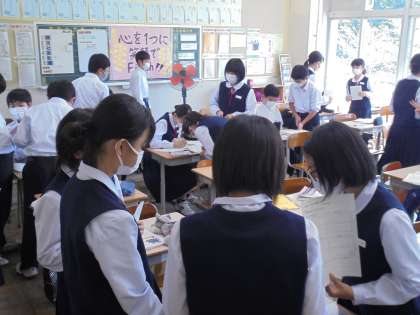 方言の「伝わらない」という欠点に目を向けた生徒が多かったのか、多くの生徒が共通語が大切であるという意見でした。