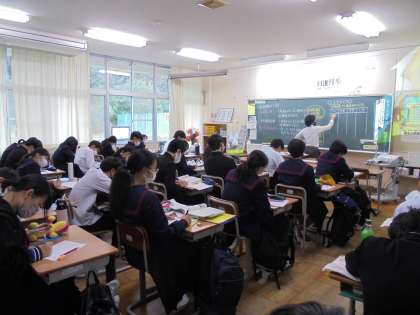 3年生の授業の様子です。 1組 社会(左) 2組 音楽(右)