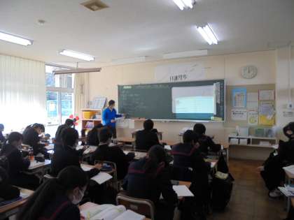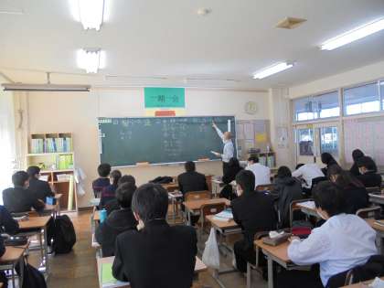 4限の授業風景です。換気のため少し窓を開けています。制服だけでは寒いのか上に1枚着ている生徒もいます。