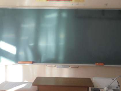 写真上 黒板がいつもきれいにしてあります。
