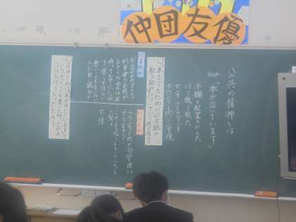 14Hの道徳は、「公共の精神」について考える授業でした。社会の問題を自分のこととして捉え、よりよくしていきたいと思える心がさらに成長してくれることを願います。