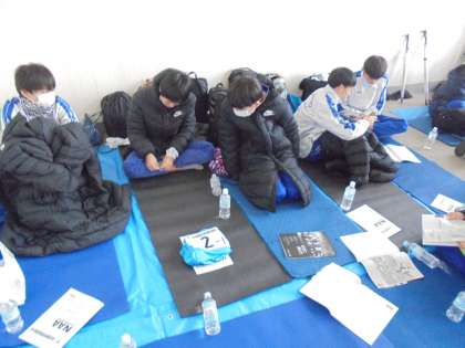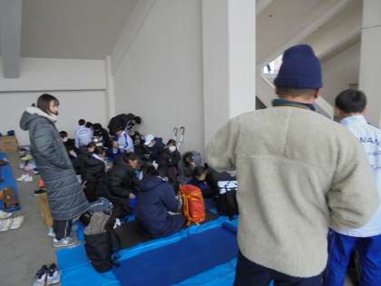 駅伝部の生徒は、ユニフォームにアスリートビブスを取り付けたり、補助競技場で最終ウォーミングアップを行い、本番に挑みました。