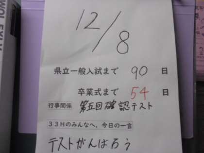 写真下 3年生の教室内のメッセージ