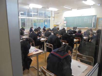 本日(12月8日)、3年生は1限から5限まで第5回確認テストを実施しています。