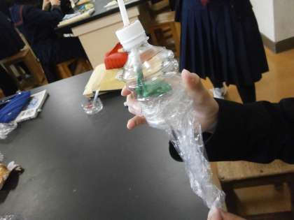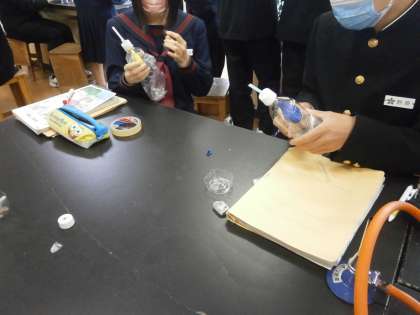 写真上・中:21H理科「肺をつくろう」