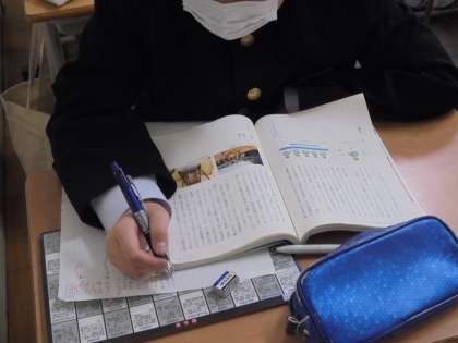 入学当初の文章よりも読解の難易度が上がっており、手こずっている場面もありましたが、真剣に本文と向き合っていました。少しずつ出されるヒントを頼りに、筆者の伝えたいことを明らかにすることができたようです。