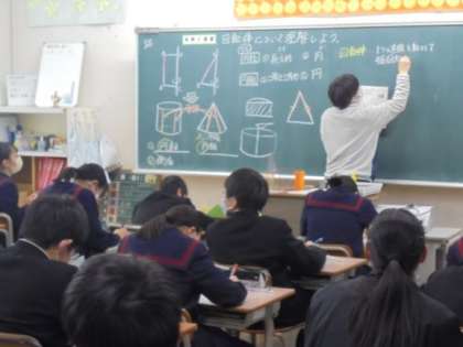 1つの直線を軸として平面図形を回転させたときにできる立体について学ぶ授業です。